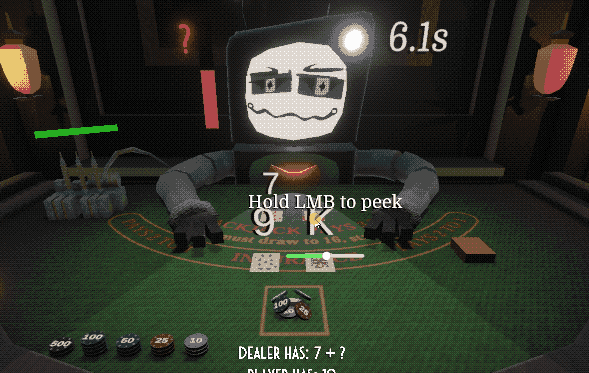 This is no ordinary game of black jack though. Use your wits and dexterity to distract the dealer and cheat your way to an easy victory.